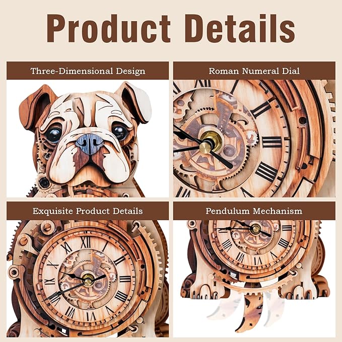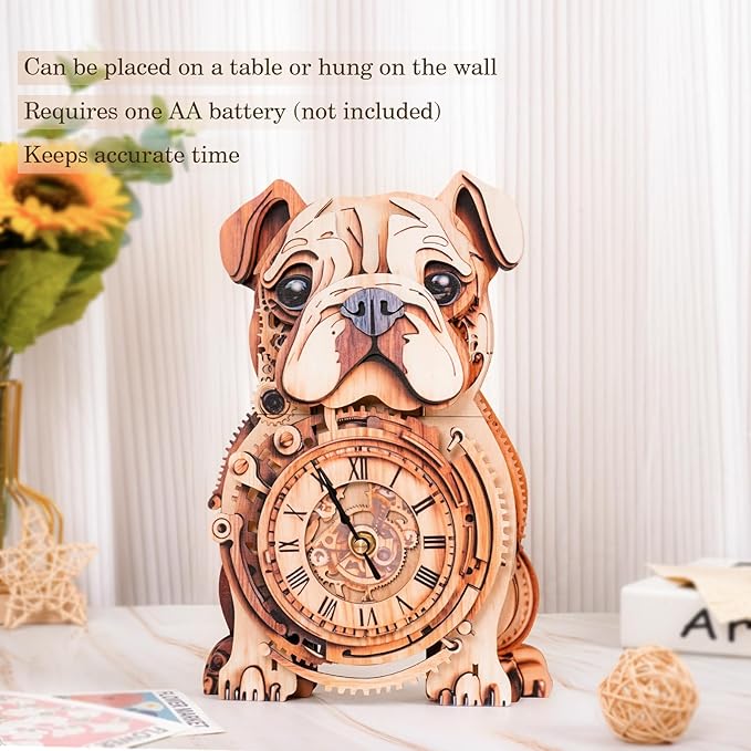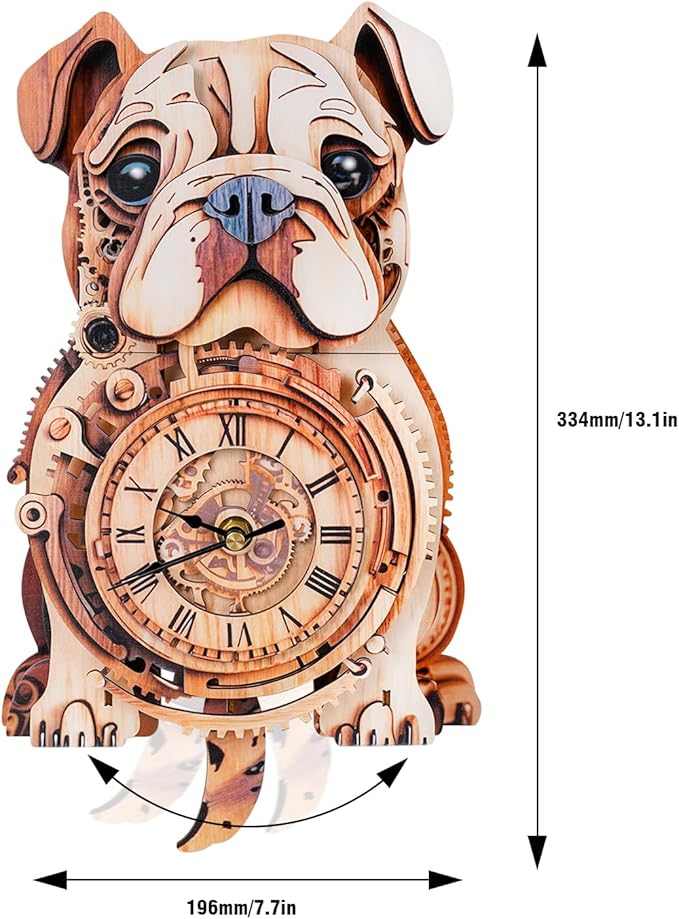 3D Wooden Puzzles for Adults Bulldog Clock - Model Building Kit Wall Clock Puzzle Creative Craft Gift Home Deco for DIY Enthusiasts, Brain Teaser Building Set Birthday Gifts