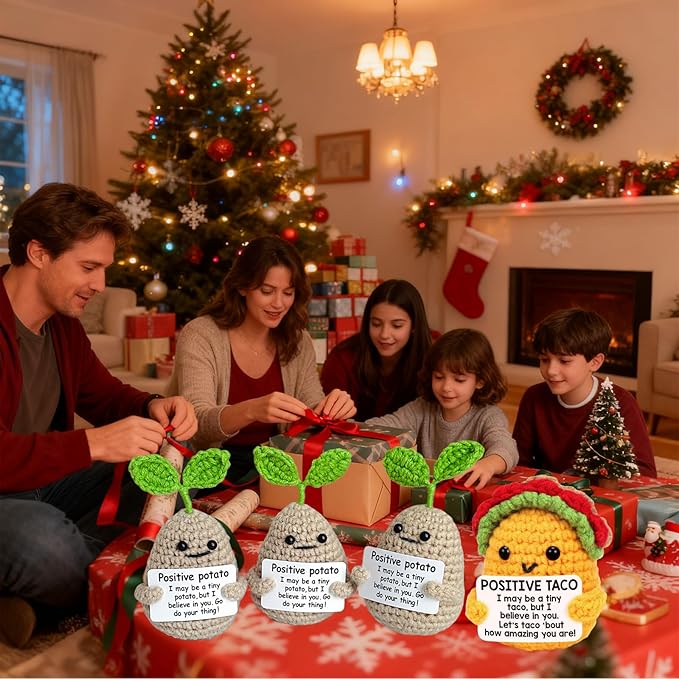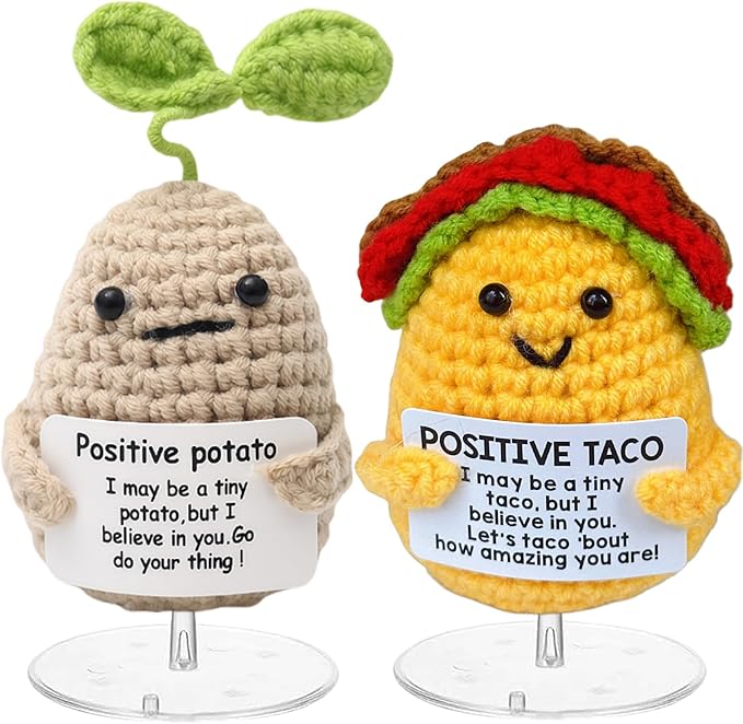 Mini Positive Cute Funny Life Potato and Taco Crochet Emotional Support Crochet Knitted Holding Card Crochet Birthday Christmas Girls Gifts Party Office Desk Decor