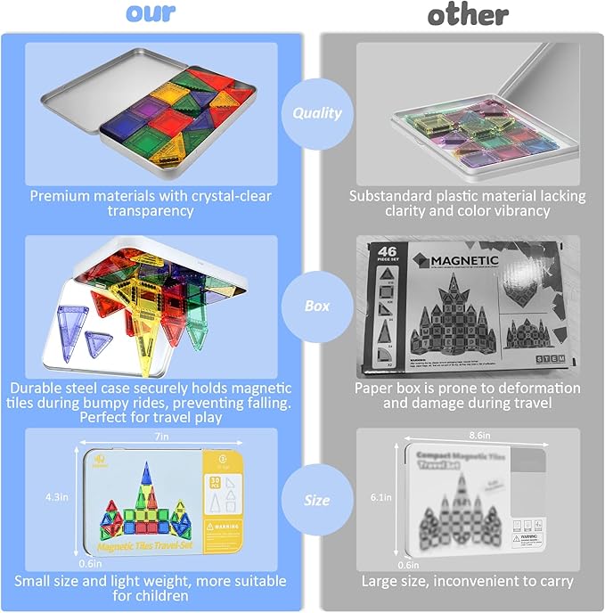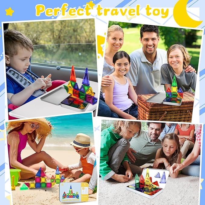 BEBOAN Travel Mini Magnetic Tiles 30PCS for Kids Ages 3+, Portable Travel Toy Essential Building Set Construction Toys with Storage Iron Case for Toddlers 3+ Boys Girls Birthday Gift