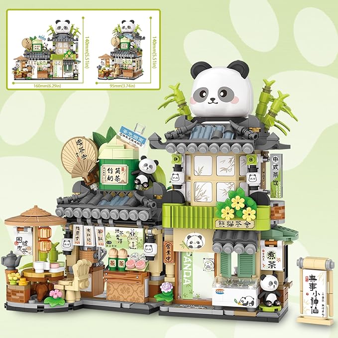 About This Exquisite Miniature Tea Shop Design - This 860PCS mini building blocks set replicates a realistic panda-themed tea house... Read more