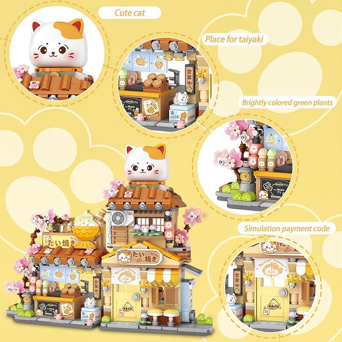 About This Exquisite Miniature Taiyaki Shop Design - This 923PCS mini building blocks set replicates a realistic Cat-themed Taiyaki house... Read more