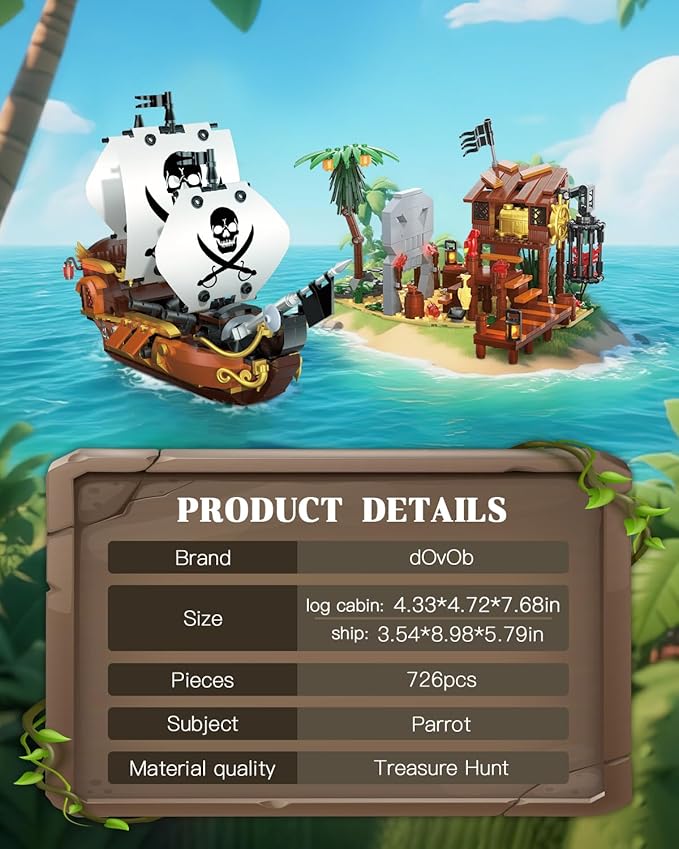 About This BUILDING SET: 726-piece pirate-themed construction set featuring a detailed dock house and ship with skull flag design DISPLAY... Read more