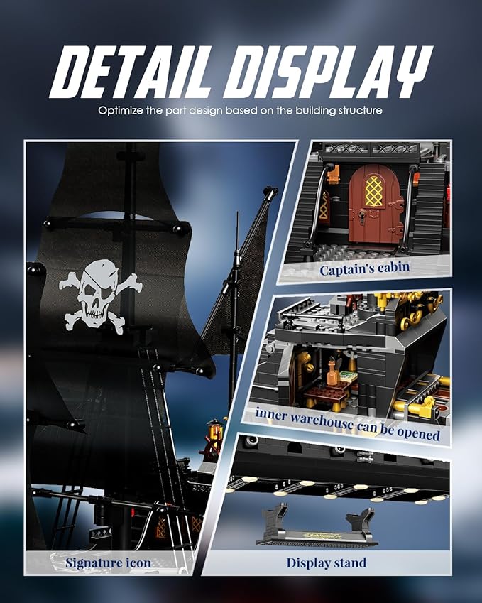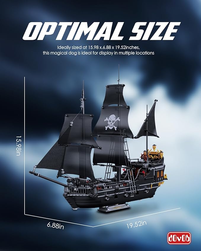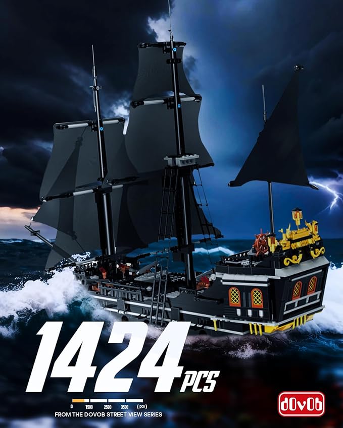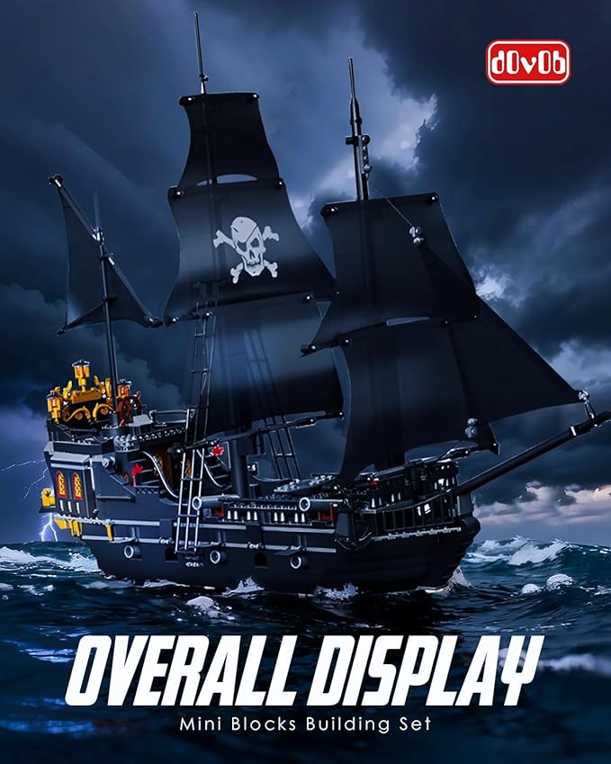 About This BUILDING SET: Impressive 1424-piece pirate ship construction set featuring detailed black vessel design with skull and crossbones flag... Read more