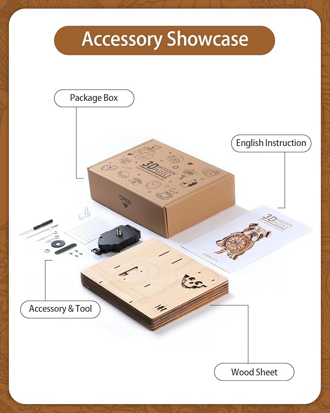 3D Wooden Puzzles for Adults, 3D Puzzles Bulldog Clock(with Pendulum) 32Pcs, Beginners Wooden Puzzle for Adults Teens Home Wall Decor Gift for Women Men