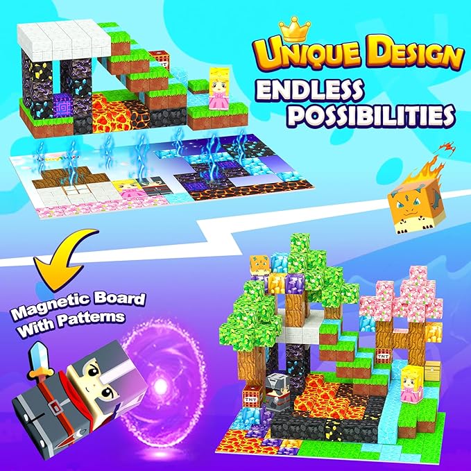 About This Magnetic Building Blocks: Explore an enchanted forest's mysteries and a glowing mine's secrets. Each block in this 154-piece... Read more