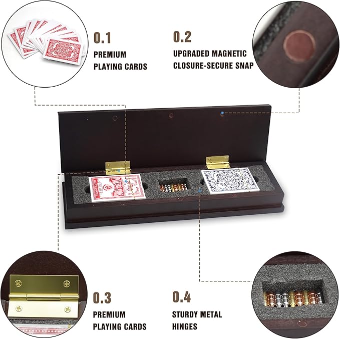Wooden Cribbage Board Game Set with Metal Pegs and 2 Decks of Playing Cards, Travel Cribbage Board with Card Storage, Magnetic Lock, Classic Continuous 3 Track Cribbage Set for Family