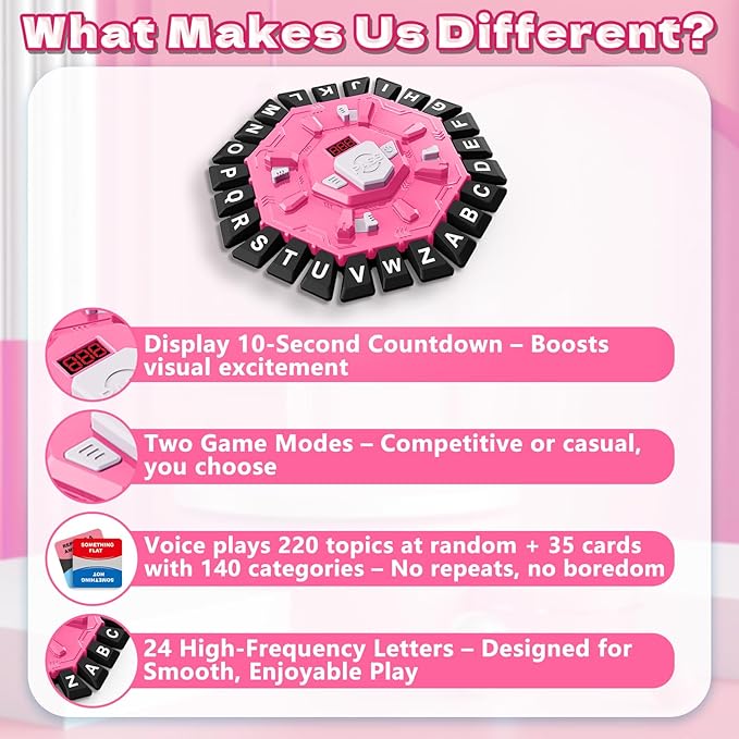 Word Game Family Board Game with Digital Display Timer, 2 Modes, 35 Double-Sided Cards, Fun Fast-Paced 24-Letter Game for Learning Party Interactive, 2+ Players, Ages 3 & Up (Pink)
