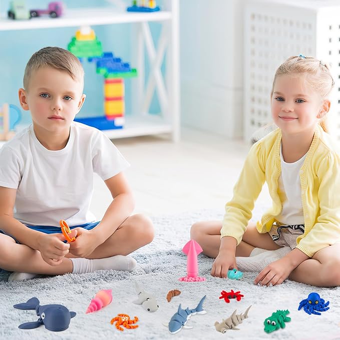 22PCS 3D Printed Sea Animals Toys, 3D Printed Mini Ocean Animals Articulating Flexible Fidget Toys, Cute Animal Figurines Toys Birthday Office Desktop Home Decoration