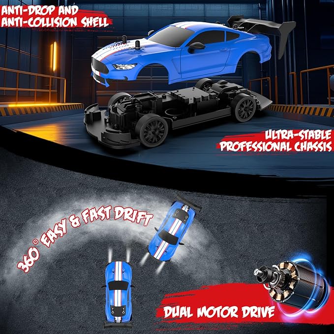 • Perfect Creative Gift for Kids: Remote control drift car has a beautiful appearance and looks very cool, it can be collected as a fine artwork or displayed as an exhibit. Whether a beginner or a remote control drift car enthusiast, is a ideal toy for family, friends and children. It is also the best gift for birthdays, parties and various festivals or rewards. Drift car is designed for hours of fun and excitement, It can also foster a close relationship between parents and children making it a perfect gift for kids