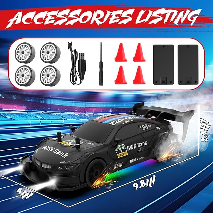 • Perfect Creative Gift for Kids: Remote control drift car has a beautiful appearance and looks very cool, it can be collected as a fine artwork or displayed as an exhibit. Whether a beginner or a remote control drift car enthusiast, is a ideal toy for family, friends and children. It is also the best gift for birthdays, parties and various festivals or rewards. Drift car is designed for hours of fun and excitement, It can also foster a close relationship between parents and children making it a perfect gift for kids