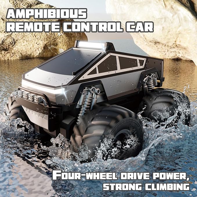 Remote Control Monster Truck Toy, Waterproof 1:16 4WD Amphibious Cyber RC Truck All Terrain Off-Road Car for 6+ Years Old Kids Boy (Black)