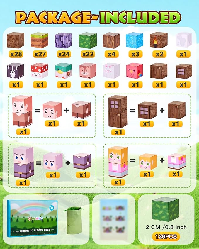126PCS Magnetic Building Blocks: Forest Castle Magnetic Blocks Building Toys, Toddler Magnet Toys STEM Building Game Sensory Gift for Kids Ages 3 4 5 6 7 8 9+ Boys Girls Birthday Gifts