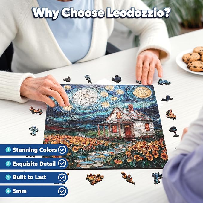 Leodozzio Wooden Puzzles for Adults, Starlight House Jigsaw Puzzles 200 Pieces-5MM Thickness, 11.2x11.2, Unique Shaped Puzzle, Perfect Choice for Birthday Gifts, Wall Art Room and Artistic Home Decor