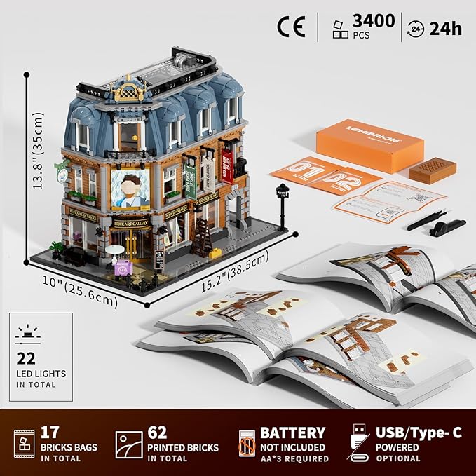 Brick Art Gallery Lighting Building Bricks Set - Town Life City Modular Collection Kit with Minifigures 3400 Pcs for Adults & Teen & Visual Art Lovers