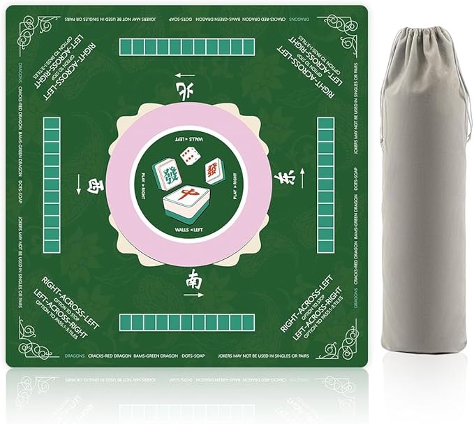 Mahjong Mat, Non-Slip Noise Reduction Mahjong Mat for Mahjong Table, Game Mat Suitable for Mahjong, Card Games, Board Games, 32 in * 32 in Game Mat, Can Be Stored in Our Storage Bag (Green)