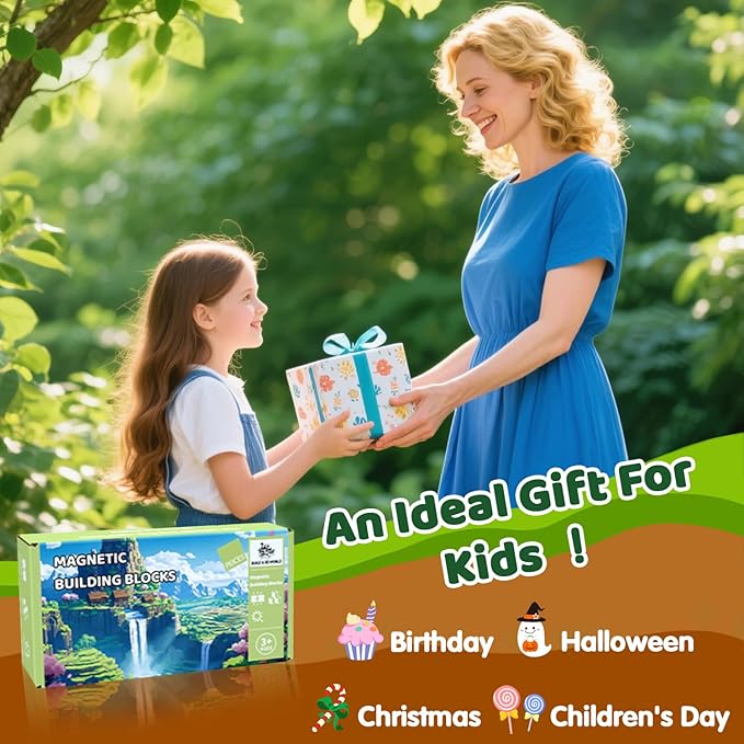 About This 【Magnetic Blocks for Kids】This set includes 100pcs 0.8inch magnetic blocks in 21 distinct designs, plus a creative storybook... Read more