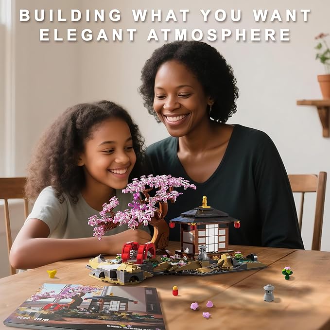 Japanese Garden Building Set, Cherry Blossom Bonsai Tree House Building Block for Adults Japanese Tranquil Garden for Home and Office Decoration Set (916 PCS)
