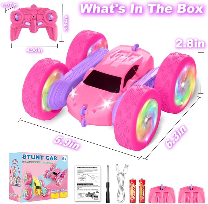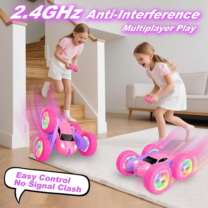 Remote Control Car, RC Cars for Girls, 2.4 GHz Double Sided RC Crawler with Upgraded USB-C Modular Battery, 360°Rotating Car Toys for 6 7 8 9 10 11 12 Year Old Girl Birthday Gift Pink-Purple