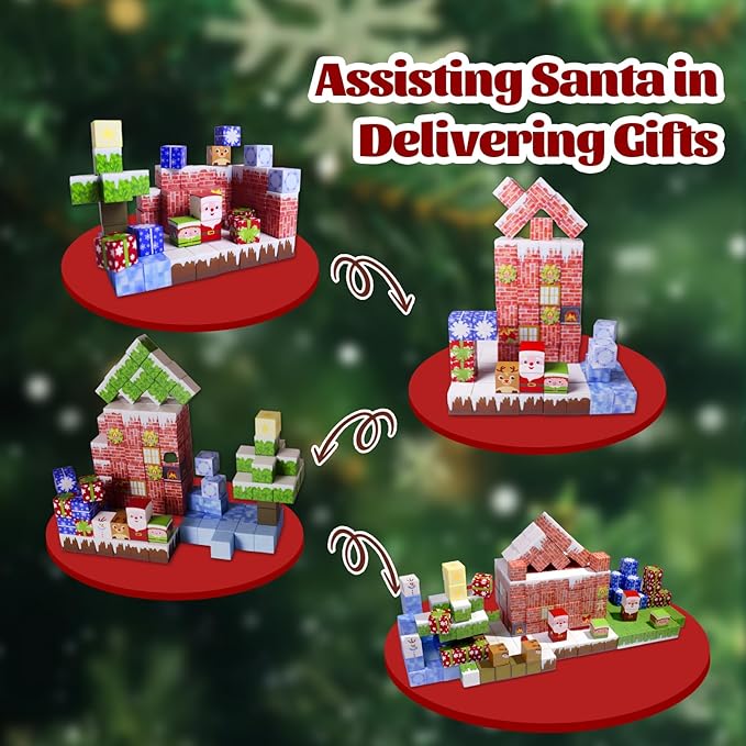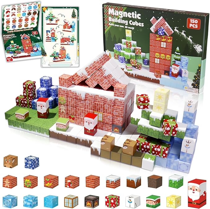 Magnetic Blocks - 150 PCS Magnets Block Sensory Educational Interactive Building Toy Set for Toddlers Kindergarten Creative STEM Learning Gift, Magnet 0.8in Tiles Construction Suit, Snow and Christmas