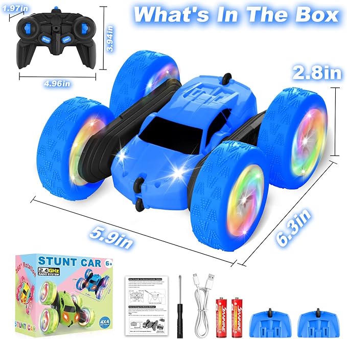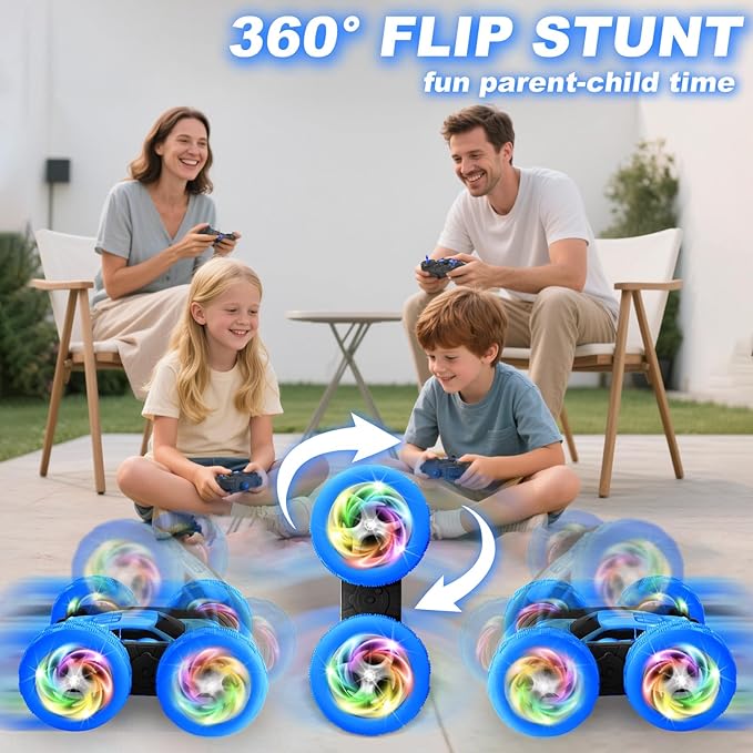 Remote Control Car, Outdoor Toys RC Cars for Kids Ages 6-12, 4WD Double Sided Stunt Vehicle with Upgraded USB-C Modular Batteries, 5 6 7 8 9 10+ Year Old Boy Birthday Blue