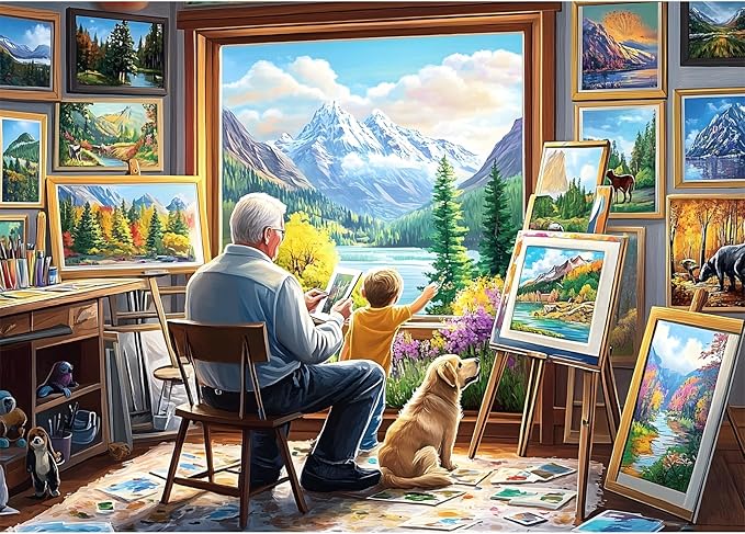 About This Charming 1000 Piece Puzzles:In an painting room, an elderly man with white hair sits on a chair, focusing... Read more