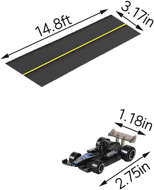 Flex Track 15 Ft Starter Set, with 4 Small Racecars,Suitable for Hot Wheels and Diecast 1/64th Cars,Long Roll-Type Portable Racing Track Suitable for Children Aged 3 and Above. (Black)