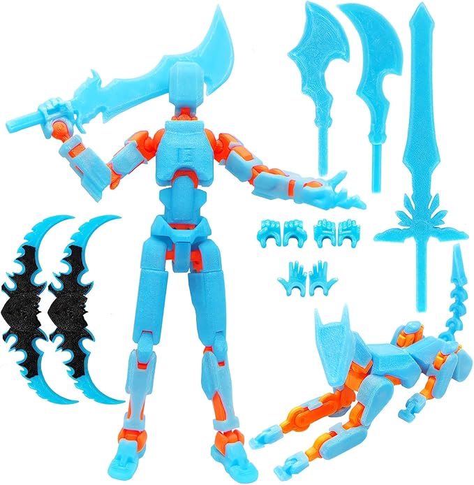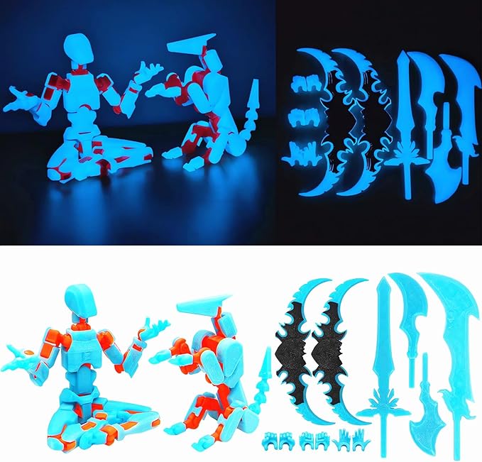 T13 Action Figures (Grow in The Dark Blue) Titan 13 Action Figures T13 3D Action Figure Set Already Assembled Dummy 13 Nova T-13 Robot 3D Printed Multi-Jointed Movable Toy (Blue Orange + Dog)