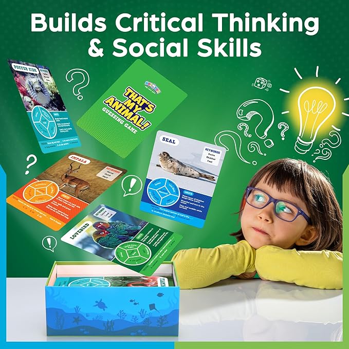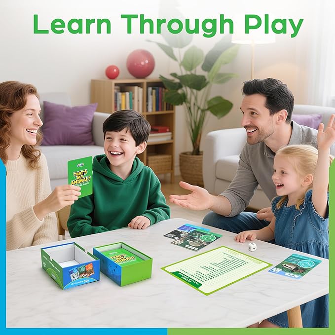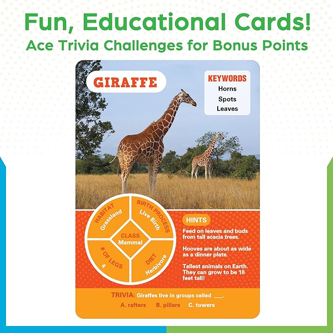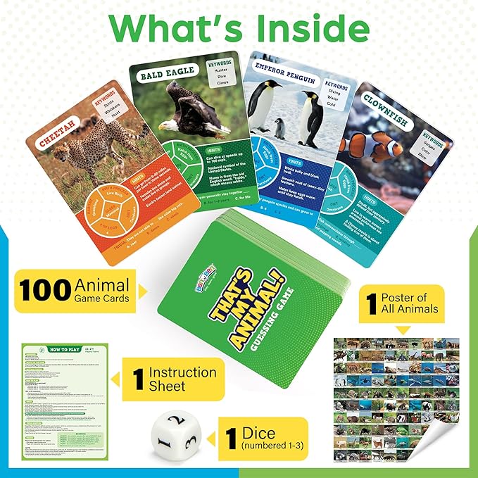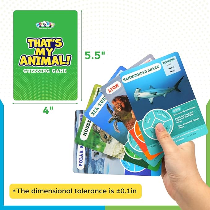 BenBen Guess Animal Card Games for Kids Family, 100 Cards, Educational Board Games for Travel, Classroom, Camping, Party, Car, Airplane, Road Trip Activities for Boys, Girls Ages 5+
