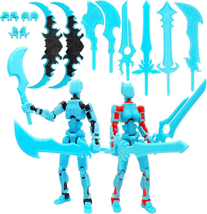 T13 Action Figures (Grow in The Dark Blue) Titan 13 Action Figures 3D Action Figure Set Already Assembled Dummy 13 Nova T-13 Robot 3D Printed Multi-Jointed Movable Toy (Blue Black+ Blue Red)