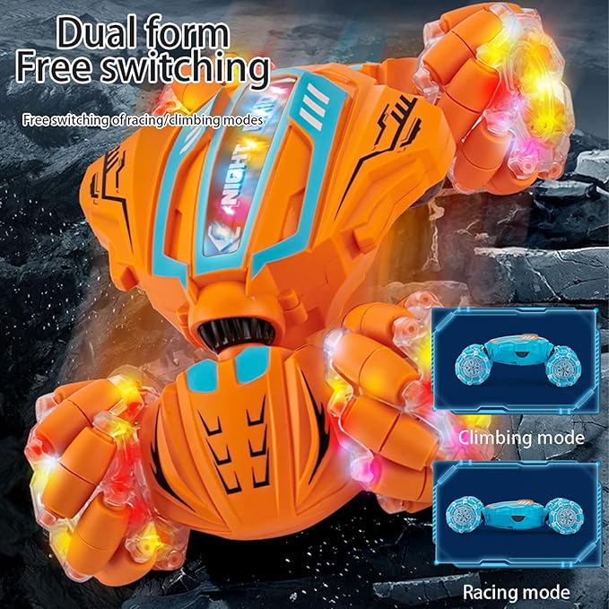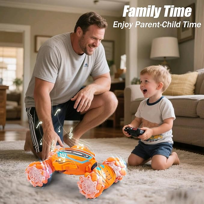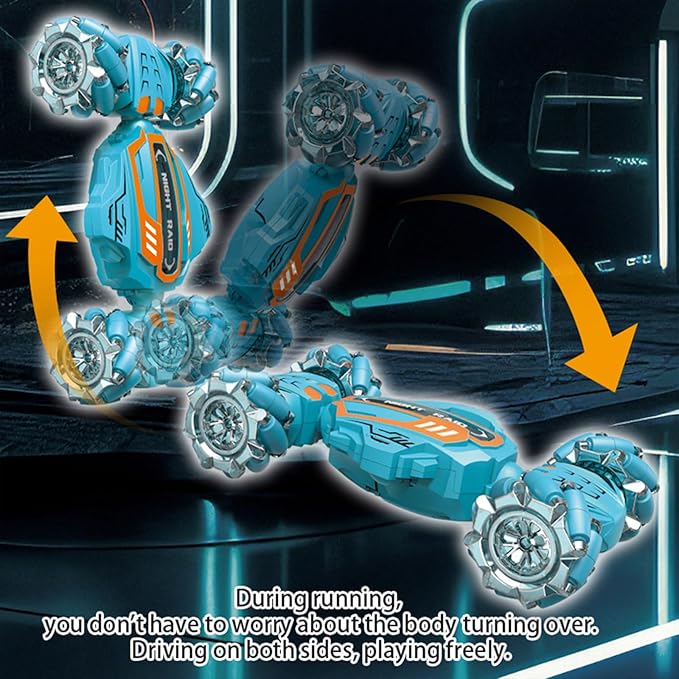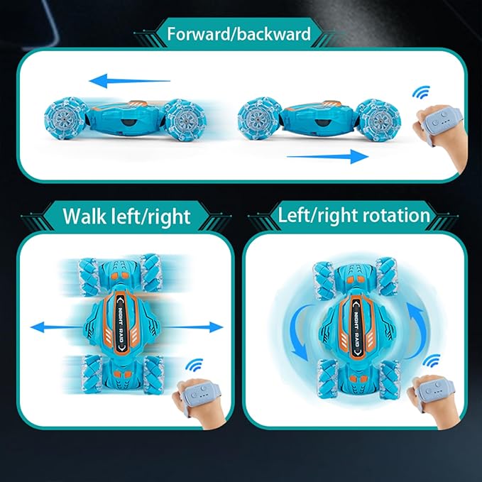 Gesture Sensing RC Stunt Car-Best Gifts for Boys 6-12 Years Old,2.4GHz 4WD Remote Control Twist Car with 360° Rotation, Music & Cool Lights,Off-Road Vehicle with Dual Batteries (Blue)