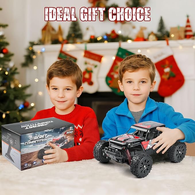 1:14 Remote Control Car for Kids, 2.4GHz Remote Control Trucks for Boys 8-12, Assembled RC Monster Truck RC Cars with 2 2S Rechargeable Batteries, All Terrain Off-Road RC Truck for Boys Girls