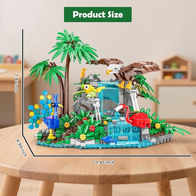 Rainforest Animal Building Set - 898PCS Jungle Theme Building Toy with Waterfall & Botanicals, Animal Sets Eagle, Flamingo & Peacock, STEM Educational Gift for Adults