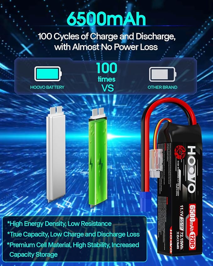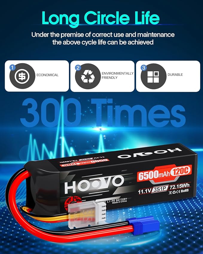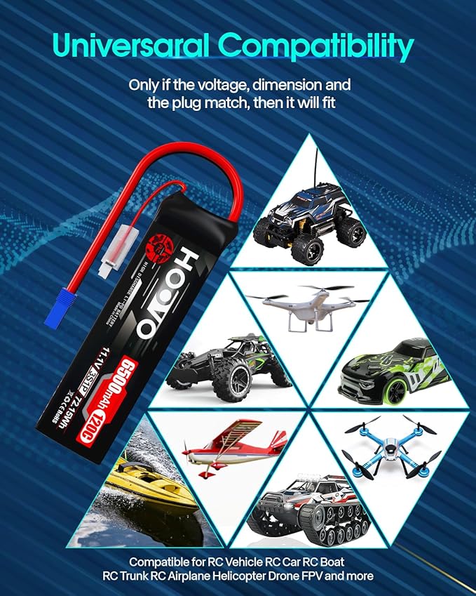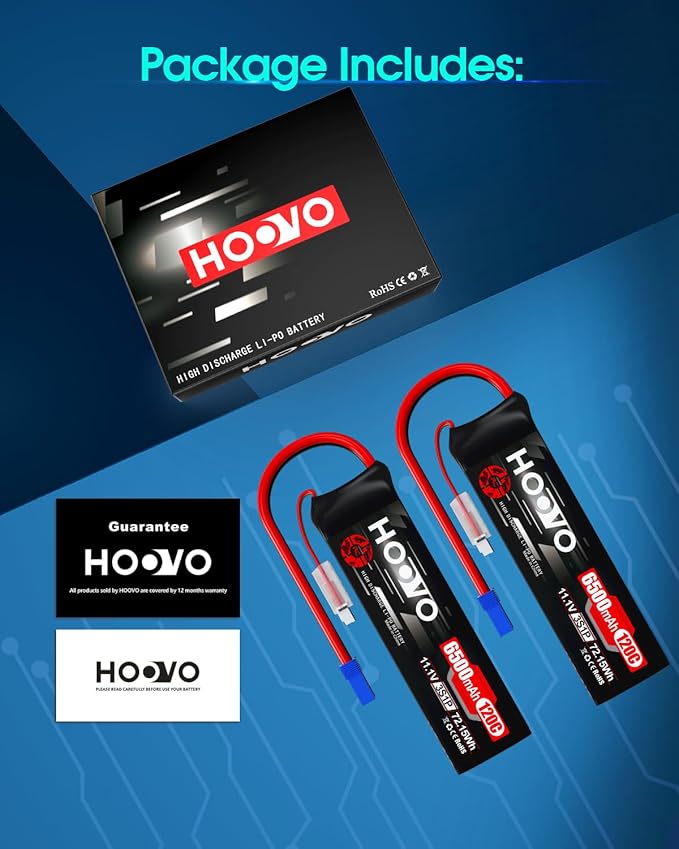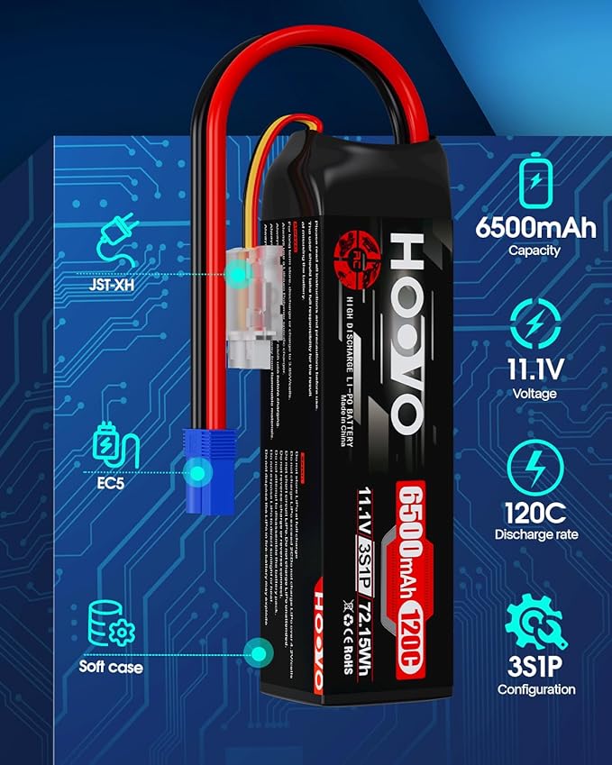HOOVO 3S Lipo Battery, 11.1V 6500mAh 120C RC Battery Pack,Softcase with EC5 Plug for RC Car Truck Buggy Crawler Airplane Boat RC Vehicle,2Packs