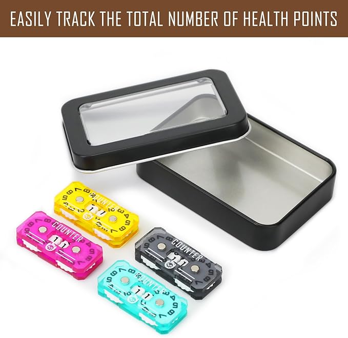 4Pcs MTG Life Counter Twin Digits with Metal Box, Tracker Life Counter for Board Games, Compatible with Magic The gatering Accessories RPG D&D CCG TCG Tabletop Board Games