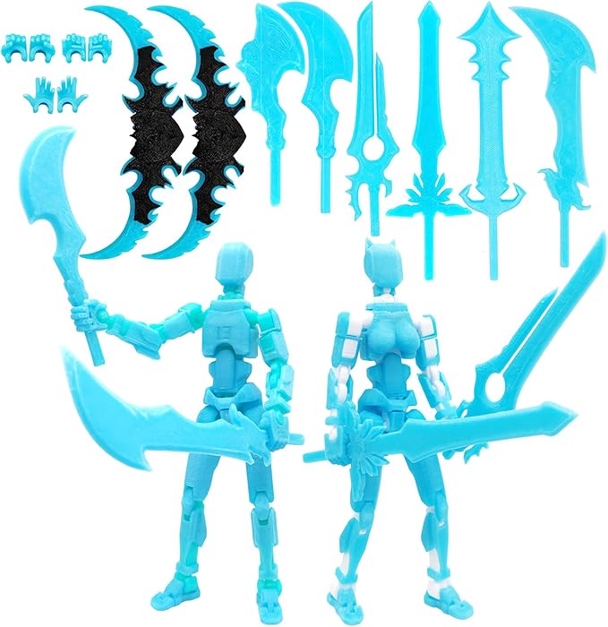 T13 Action Figures (Grow in The Dark Blue) Titan 13 Action Figures 3D Action Figure Set Already Assembled Dummy 13 Nova T-13 Robot 3D Printed Multi-Jointed Movable Toy (Blue Blue +Blue White)
