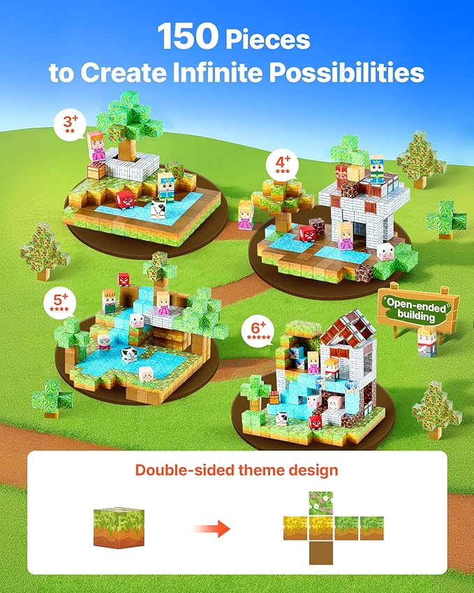 About This 【Freeform Building & Dual-sided Themes】 With 150 magnetic blocks and dual-sided themes, your child can create flat designs,... Read more