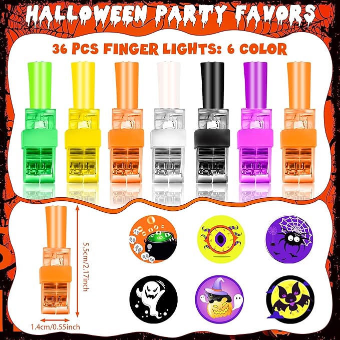About This [ Halloween Party Favors for Kids ] You'll receive 36 Halloween LED finger projection lights in 6 festive... Read more