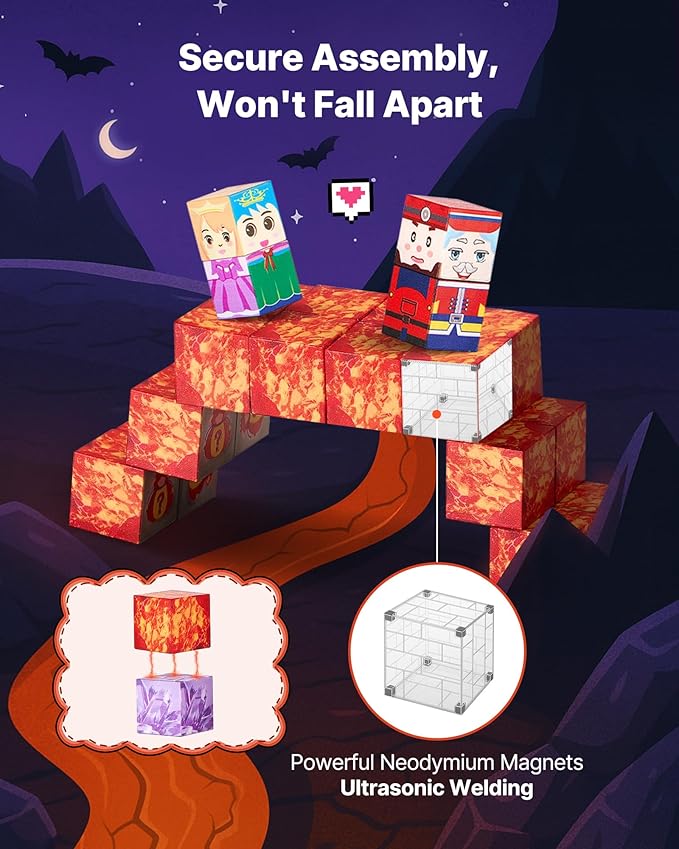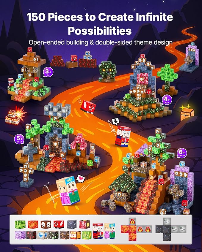 VEVOR Magnetic Blocks, 150 PCS Dark Castle Set, Magnetic Building Cubes for Kids, STEM Montessori Sensory Toys for Christmas Birthday Gift, Construction Stacking Toy for 3+ Years Old Boys & Girls
