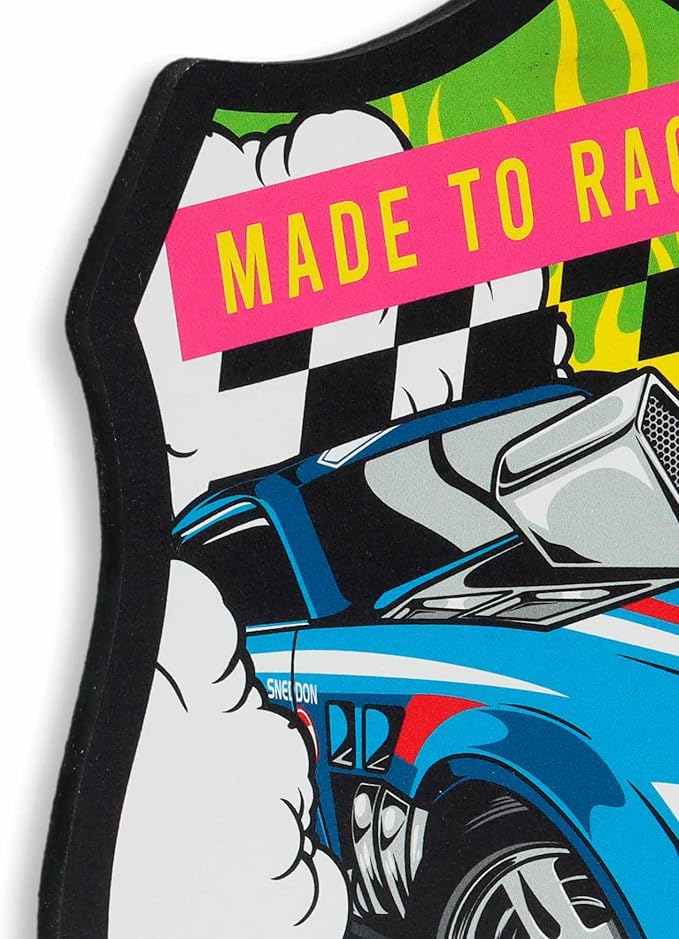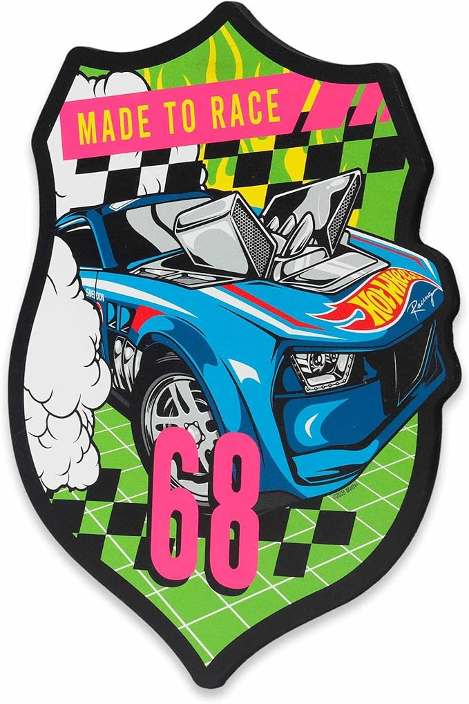 Hot Wheels Made to Race Wood Wall Decor - Bold Hot Wheels Racing Sign Featuring Blue Muscle Car Art