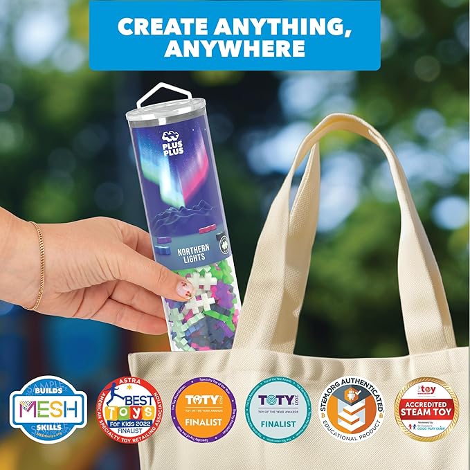 PLUS PLUS 240 Piece Interlocking Building Blocks for Kids, Open Ended Connecting Toys, STEM Bin Classroom Mini Manipulatives - Northern Lights Mix Play Tube