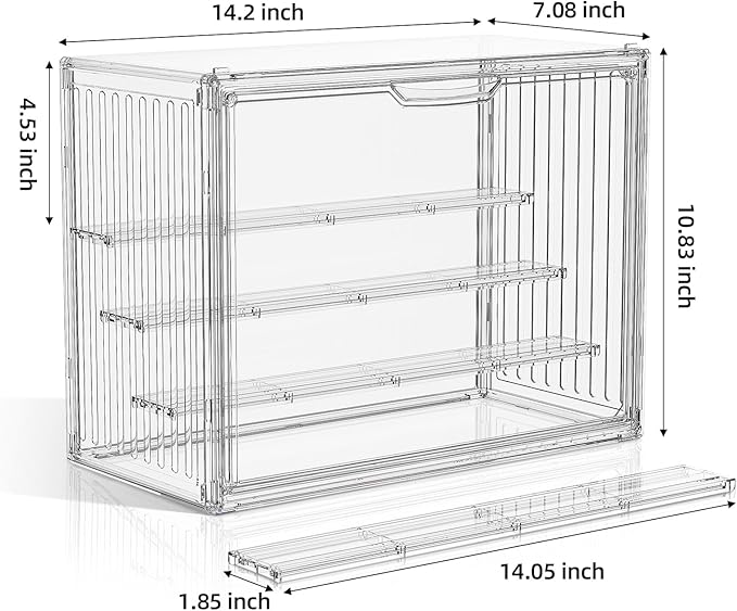 • Space-Saving Stackable Design: Size: 14.2x7.08x10.83 inch, Seamlessly stack multiple units for vertical storage without wobbling, build your own modular display tower or compact storage system, this acrylic display case with shelves is perfect for organizing large collections in mimimal space