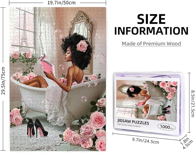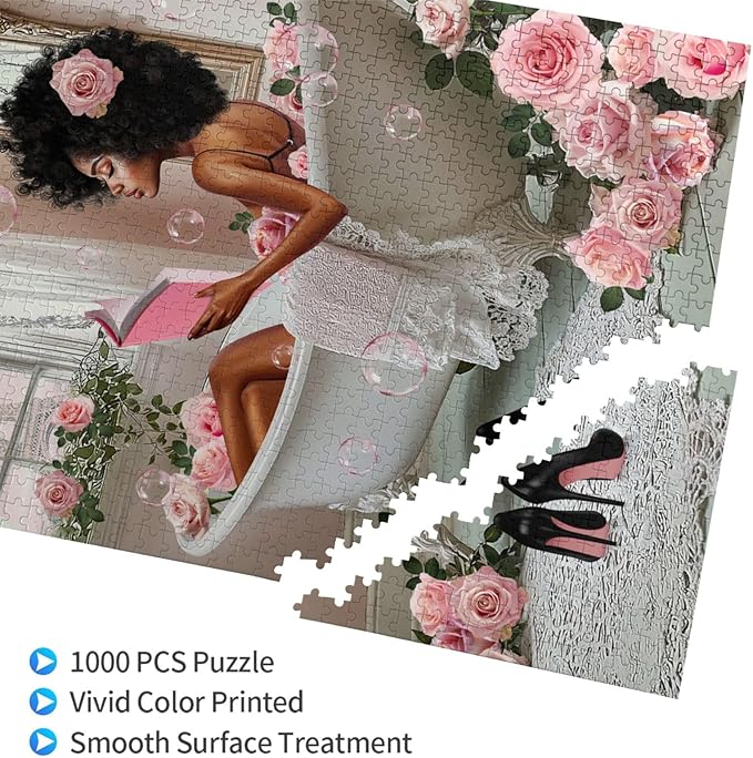 African American Jigsaw Puzzles 1000 Pieces for Adults, Bath Time Reading Scene, Black Woman Wooden Puzzle for Stress Relief, Challenging Brain Teaser & Home Decor