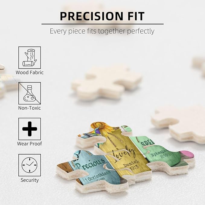 About This Wood Imported Uplifting 500 Piece Christian Puzzles for Adults: This vibrant sunflower design featuring the affirming message 'God... Read more