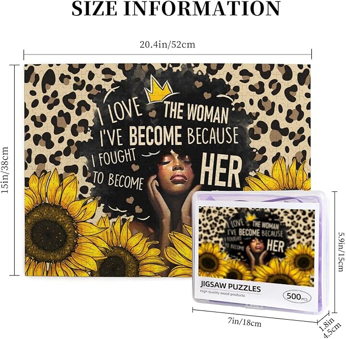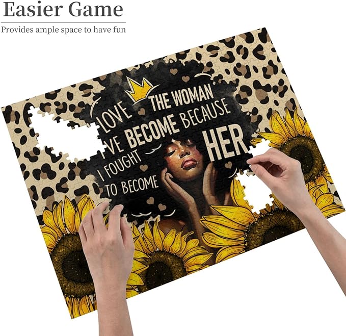 African American Jigsaw Puzzles 500 Pieces for Adults, Sunflower & Leopard Print Art, Black Woman Wooden Puzzle for Stress Relief, Challenging Brain Teaser & Home Decor