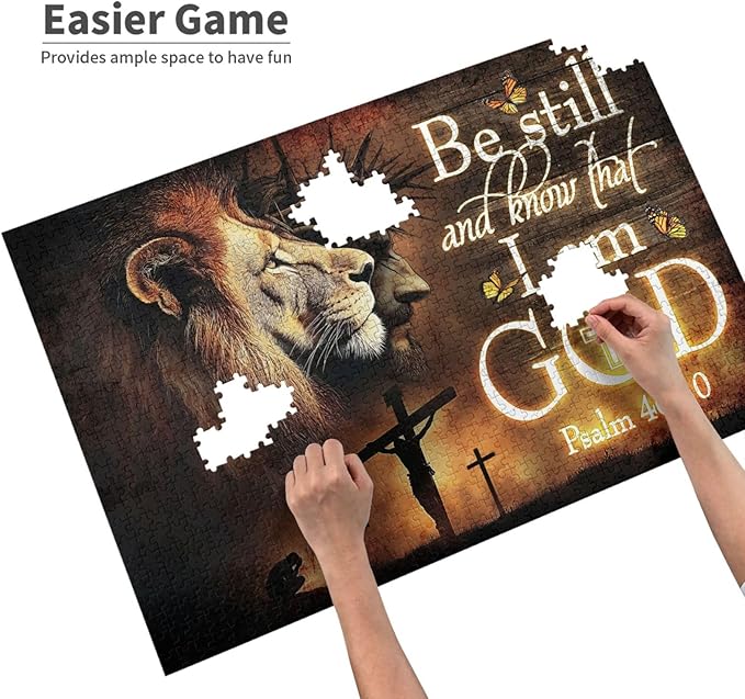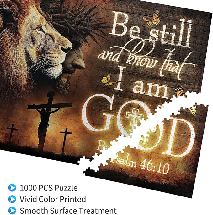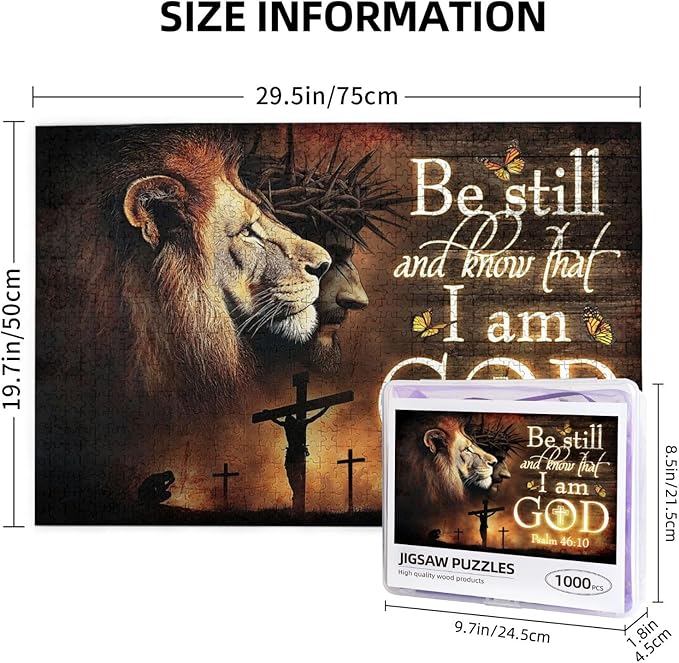 Christian Jigsaw Puzzles 1000 Pieces for Adults, Be Still and Know That I Am God Bible Verse with Lion, Religious Wooden Puzzle for Stress Relief, Faith-Based Gift & Wall Decor