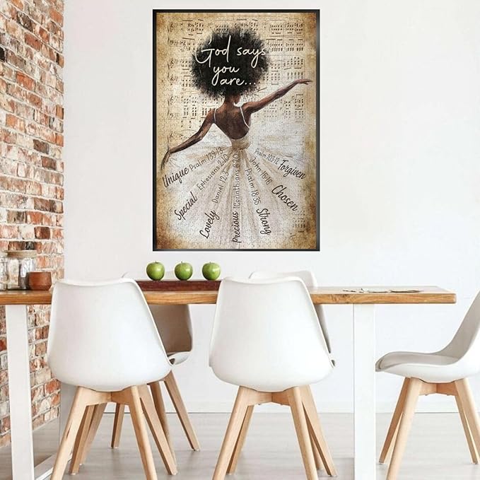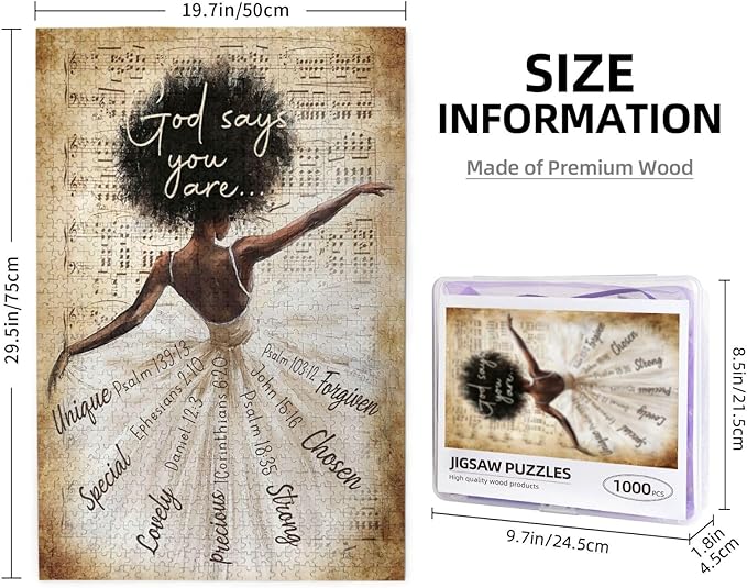 African American Jigsaw Puzzles 1000 Pieces for Adults, Dancing with God Says You are Quote, Black Woman Wooden Puzzle for Stress Relief, Challenging Brain Teaser & Home Decor