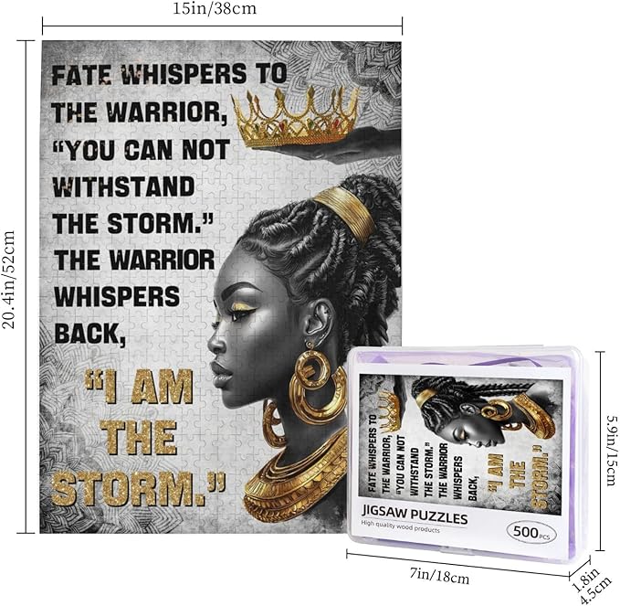 African American Jigsaw Puzzles 500 Pieces for Adults, I Am The Storm Crowned Queen Art, Black Woman Wooden Puzzle for Stress Relief, Challenging Brain Teaser & Home Decor