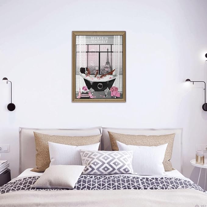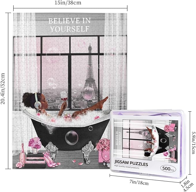 African American Jigsaw Puzzles 500 Pieces for Adults, Bath Time Drinking Scene, Black Woman Wooden Puzzle for Stress Relief, Challenging Brain Teaser & Home Decor