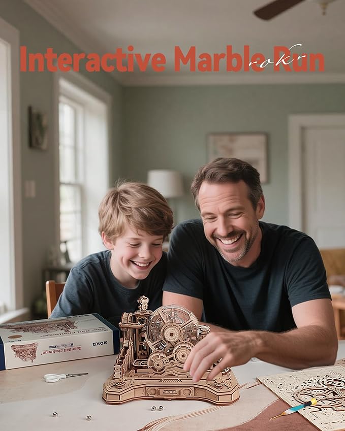 ROKR 3D Wooden Puzzle for Adults, Wooden Marble Run Set, Model Building Kits, Christmas Birthday Gifts for Teens and Adults, DIY Gear Ball Challenge