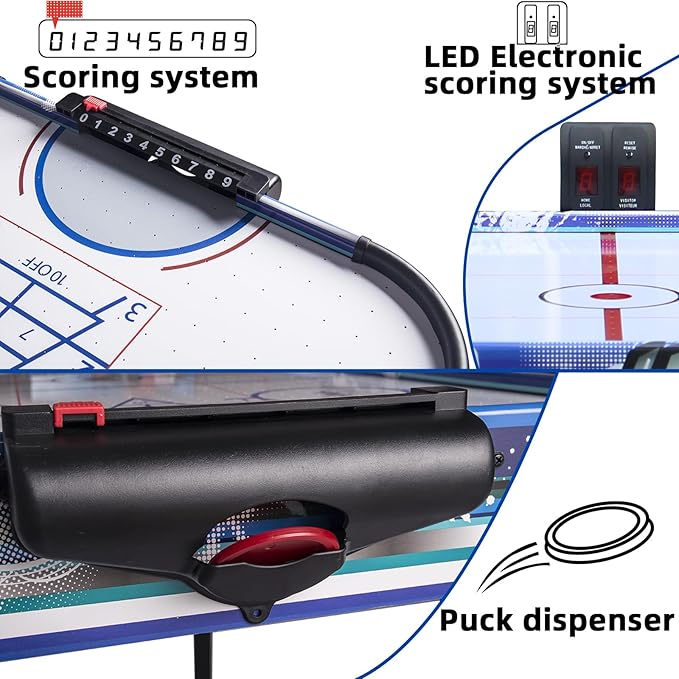 Air Hockey Table Foldable 4ft Powered Hockey Game Table 48 inch Indoor Electric Hockey Table w/2 Pucks, 2 Pushers,Shuffleboard,Bowling,Powerful 12V Motor for Adults and Kids